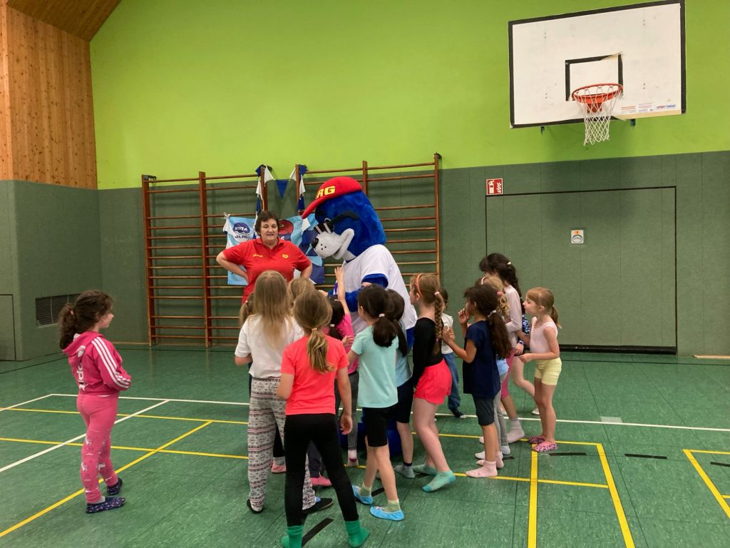 Die Kinder erlebten die Bade- und Sonnenschutzregeln mit allen Sinnen: Ein Tanz zum